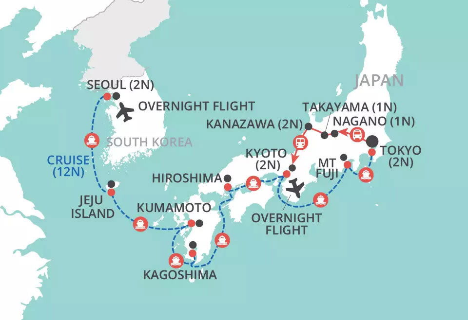 Welcome to Japan! Today you'll have the option to explore the lovely Kumamoto on the Japanese island of Kyushu. Home to the samurai fortress of Kumamoto and the traditional Suizenji Garden, in the area around the city you'll find beautiful countryside, centred around the mighty Mount Aso, Japan's largest active volcano. (B/L/D)