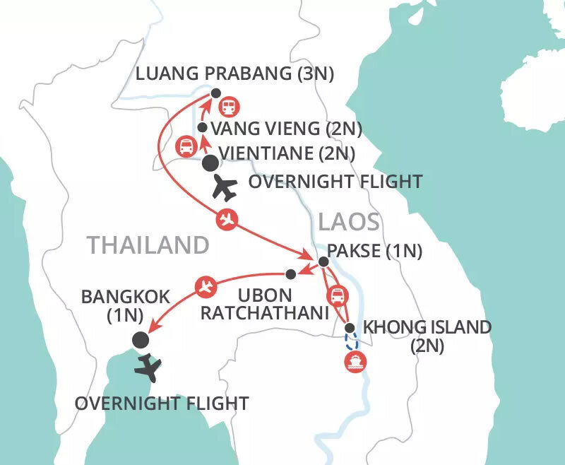 This morning drive to Pakse, stopping en route to admire Tad Yuang and Tad Fane waterfalls. Continue up onto the Bolaven Plateau to pay a visit to a coffee plantation and hear about the process of planting, harvesting and roasting the beans. This evening, enjoy dinner in Pakse. (B/L/D)