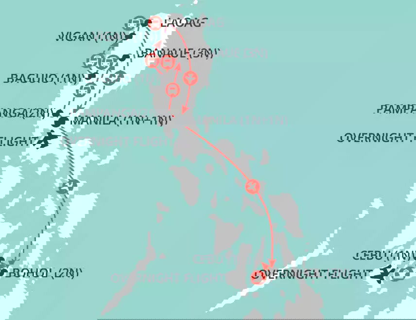 This morning, head north along the coast and arrive at the colonial settlement of Vigan, distinctly Spanish in character and now a UNESCO World Heritage town. Wander the scenic cobblestone streets, visiting colonial houses, museums and a pottery maker. (B/L/D)
