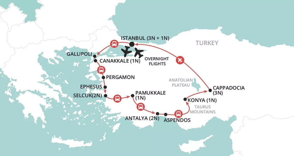 On arrival in Istanbul, check into your hotel then enjoy the rest of the afternoon in one of the world's great cities. You can either explore independently, do some souvenir shopping or indulge in the refined art of the Turkish Bath. On your final evening enjoy a farewell dinner of traditional Turkish cuisine with traditional live music. (B/L/D)