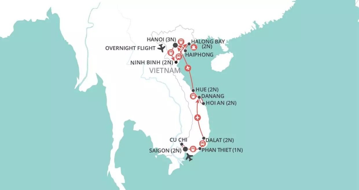 Begin your explorations at the Art Deco-style 'summer palace' of King Bao Dai, the last king of Vietnam. Continue to the train station and take the vintage open-air train to the village of Trai Mat, the site of King Bao Dai's holiday and hunting camp. Enjoy a leisurely walk through the village before driving to Cau Dat Tea Hill, established in 1927 and still a hub of tea production. (B/L/D)